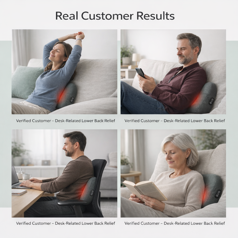 Relieve deep lumbar tension caused by daily sitting with a triple-action approach that targets pain at the source. This ergonomic device combines pressure, support, and heat to restore comfort in just 10 minutes a day.